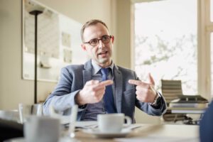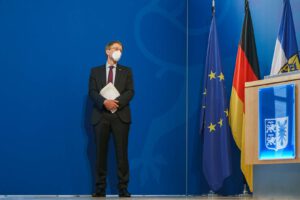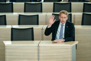 Dirk Schrödter (CDU). Minister und Chef der Staatskanzlei des Landes Schleswig-Holstein bei einem Pressegespräch in seinem Büro.